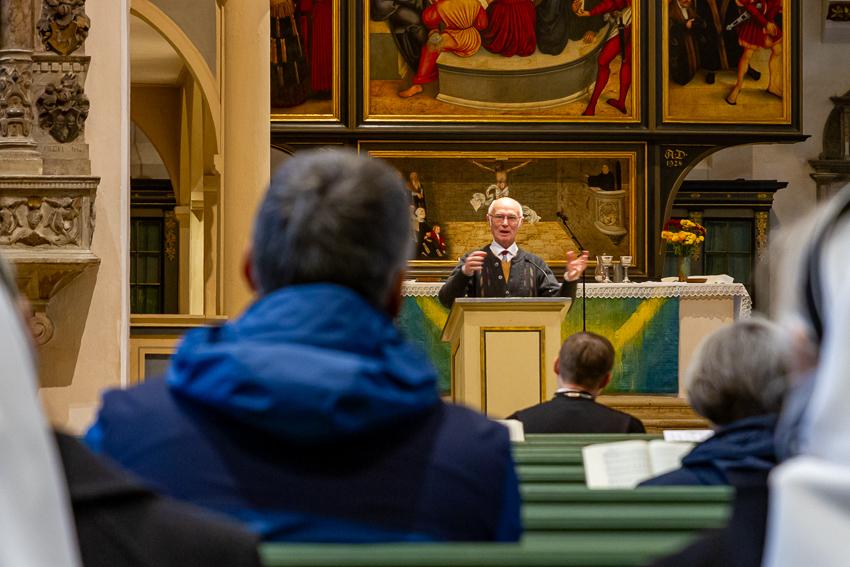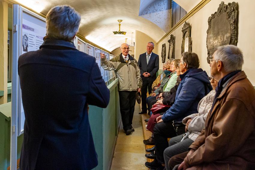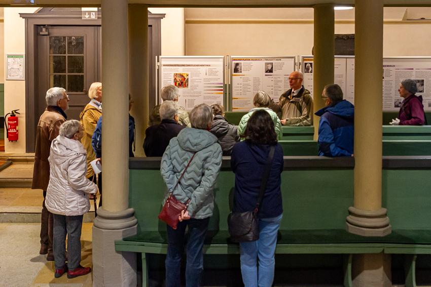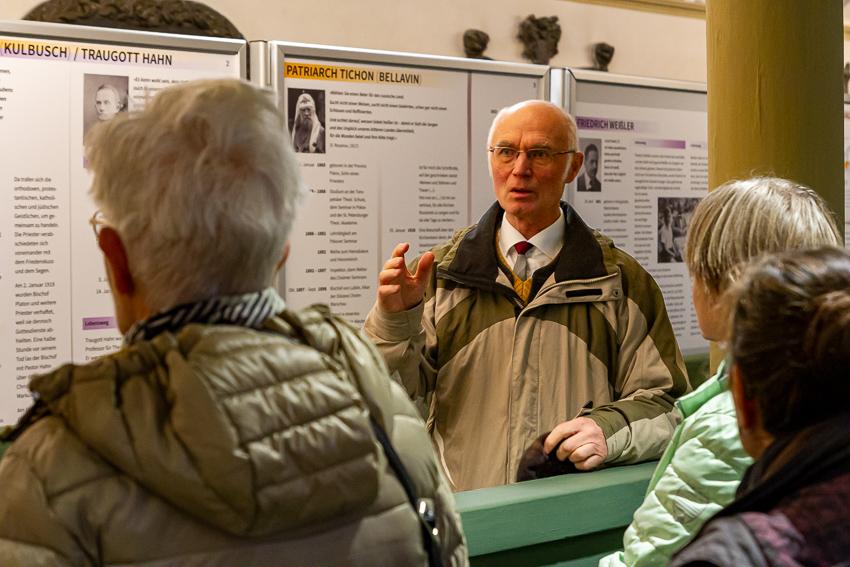 Eröffnet wurde die Ausstellung durch Pfarrer i. R. Johannes Paulsen, der im Anschluss an den Gottesdienst in der Stadtkirche durch sie führte. 22 Bildtafeln sind aufgebaut und er stellte einige der dort beschriebenen Persönlichkeiten näher vor, wusste vieles aus ihrem Leben eindrücklich zu erzählen.